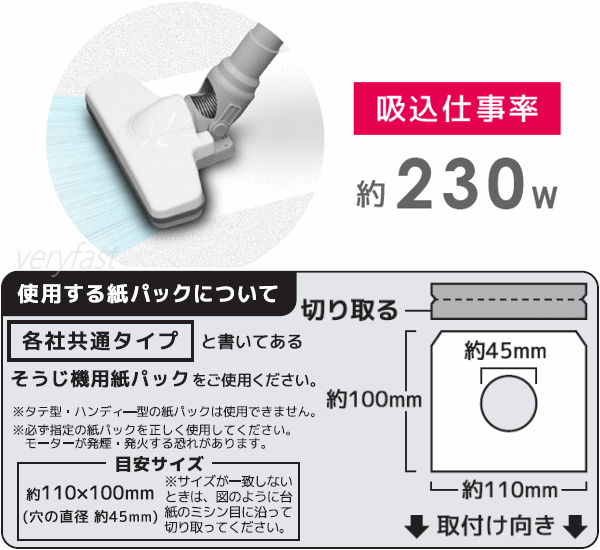※使用する紙パックについては「各社共通タイプ」と書かれている市販のそうじ機用紙パックを