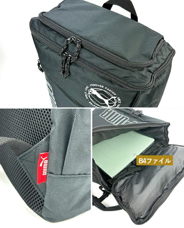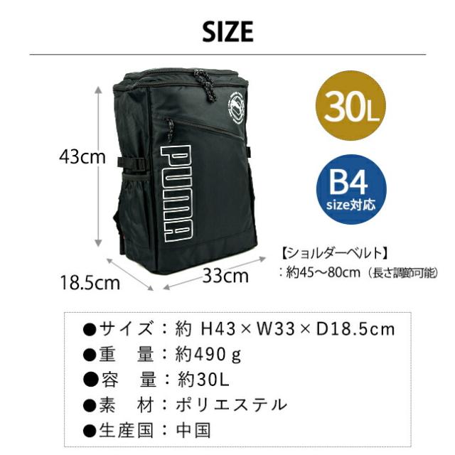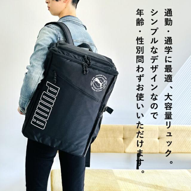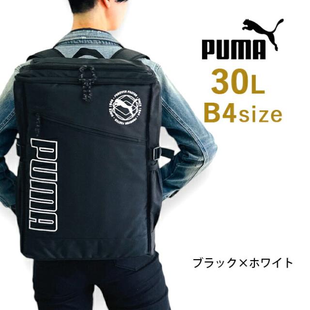 リュック 通学 大容量 男子 高校生 中学生 PUMA プーマ j20337 ロゴプリント スクエアリュック BOX型 リュックサック 30L A4 B4 PC タブレット 通学リュック 修学旅行 林間学校 部活 合宿 男女兼用 大きめ おしゃれ かっこいい メンズ レディース シンプル ブラック 黒 人気