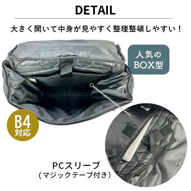 A4はもちろんB4サイズも収納でき、内側にPC・タブレットポケット付き。