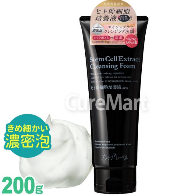 ヒト幹細胞配合 クレンジング洗顔 200g 日本製 プラチナレーベル 濃密泡 メイク落とし+洗顔 肌荒れ 年齢肌に ヒト幹細胞配合洗顔料
