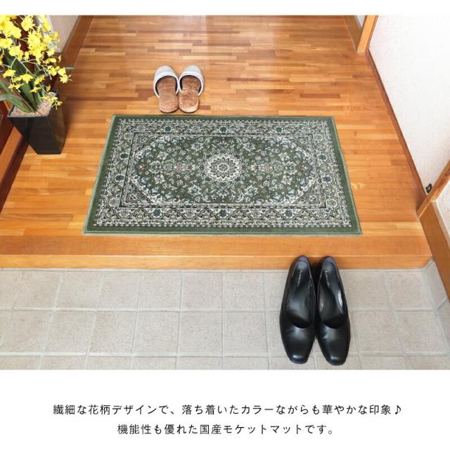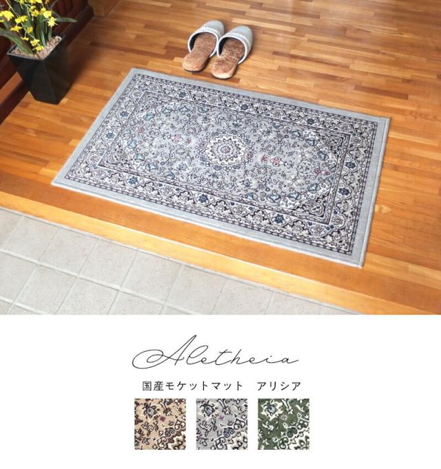 玄関マット 北欧 室内 屋内 60×90cm アリシア 日本製 国産 モケット織り 滑り止め 抗菌 防臭 洗える 洗濯 ベージュ グレー グリーン エントランス マット 玄関