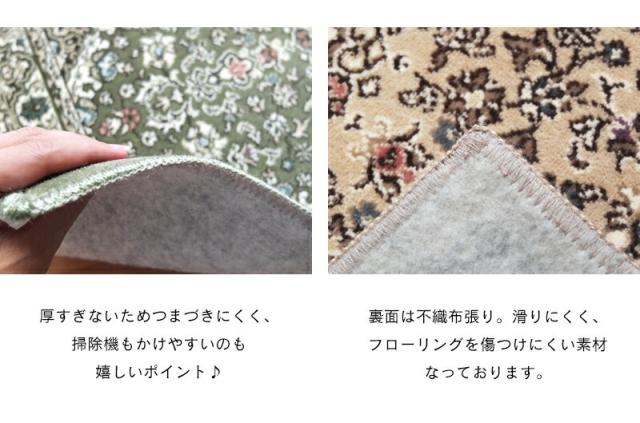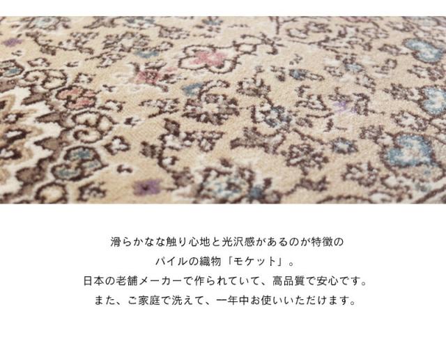 ・軽くて洗える、国産モケットマット。 ・繊細な花柄デザインは、落ち着いたカラーで派手すぎずも華やかな仕上がりです。 ・厚すぎないためつまづきにくく、掃除機をかけるのも簡単。 ・天然成分「キトサン」による抗菌防臭効果有。 ・夏もさらさらな踏み心地で快適に。床暖房、ホットカーペットにも対応。オールシーズンご利用いただけます。 |