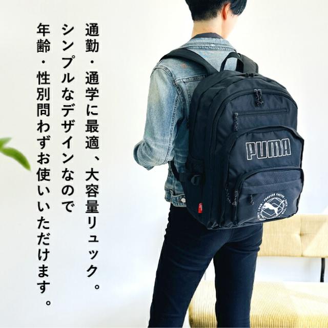 リュック 通学 大容量 男子 高校生 中学生 PUMA プーマ j20336 ロゴプリント 2層リュック リュックサック 30L A4 B4 PC タブレット 通学リュック 修学旅行 林間学校 部活 合宿 小学生 遠足 男女兼用 大きめ おしゃれ かっこいい メンズ レディース シンプル ブラック 黒 人気