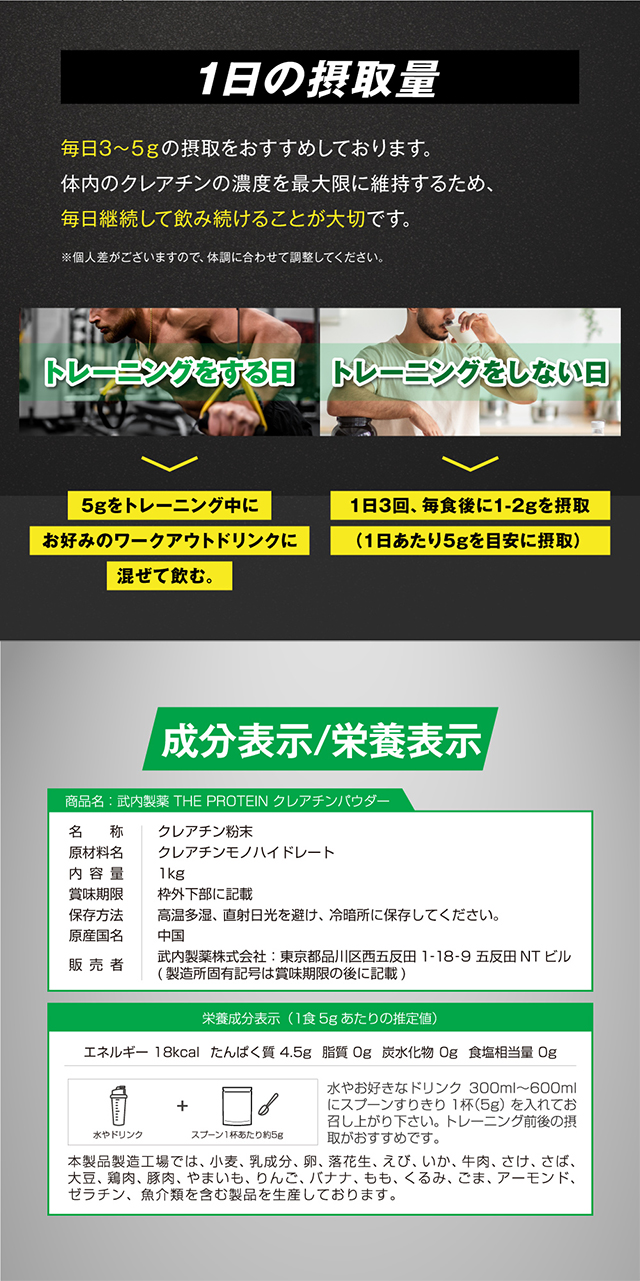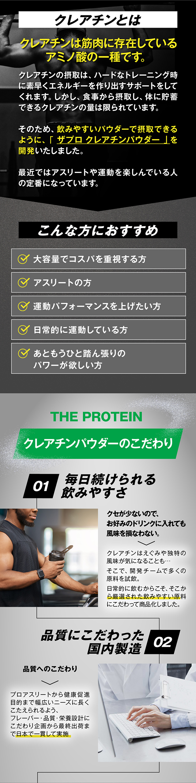 クレアチン モノハイドレート 99.9% 550g 田口純平選手愛用 パウダー THE PROTEIN ザプロ 武内製薬 サプリ 男性 女性 ダイエット 筋トレ サプリメント お試し クレアチンモノハイドレート プレワークアウト
