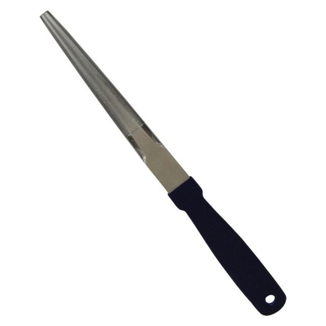 | 仕様 | ●全長215mm(ヤスリ部分約80mm)。●粒度:300番相当。●先細半丸型。●グリップ付。 |