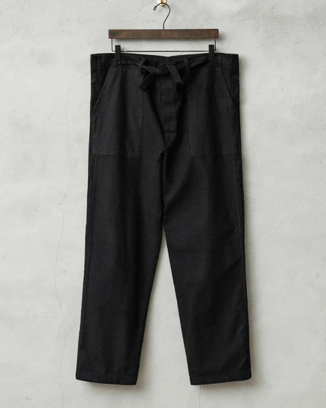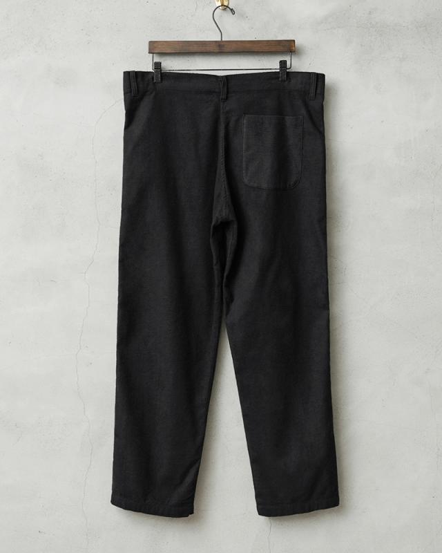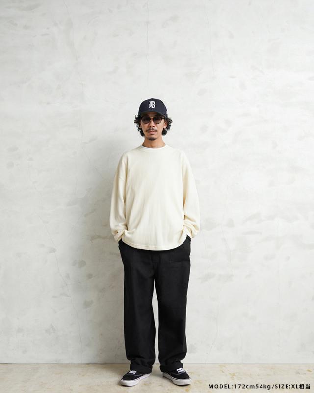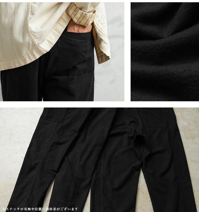 | 商品説明 | WAIPER.inc 実物 新品 デッドストック 米軍 ヴィンテージ HOSPITAL フランネル リメイクパンツ ポケット付き BLACK染めの ご紹介です。 制式名称:TROUSERS,MEN’S,PAJAMA COTTON FLANNEL 1960年代を中心とした年代の古い、米軍のコットンフランネルをさらに使いやすいように、雰囲気の良いパッチポケットとバックポケットをデザインしてリメイクを施しました。さらに、フロントのベルトループの位置を調整し、サイドとバックにもループを追加することで、お手持ちのベルトを用いて着用可能に。サイズ選びの幅も広がるリメイクアイテムになっております。 そして本来はライトブルーのフランネルパンツを染め職人に丁寧にBLACK染めしていただきました。BLACKにする事で落ち着きのある雰囲気の良い色合いに仕上がりました。 米軍の医療機関などでホスピタルパンツとして使用されていたアイテムで、主に戦闘外の後方エリアで使用されていたようです。負傷して回復中の戦闘要員にも適切に治癒しながら快適に過ごせるようにゆったりとした作りになっています。フロントはウエスト部分にスナップボタンが1つ付属していますが、前開きはステッチで区切られていますので気になりません。ウエストのコードで絞って穿いていただくデザインです。 肌ざわりの良いコットンフランネル100%素材で、表地と裏地ともに起毛加工が施されていますので着用感が素晴らしく保温性にも優れています。パジャマとしての使用にはもちろん最適ですが、イージーパンツのようにラフに穿いていただくのもおすすめしたいパンツです。 根強い人気アイテムのスリーピングパンツは使い勝手が良くなるようリメイクし、さらにBLACK染めしたことで着こなしの幅が広がりました。米軍のヴィンテージアイテムで希少なデッドストックに製品染めを施した贅沢な1枚です。 | |||||||||||||||||||||||||||||||