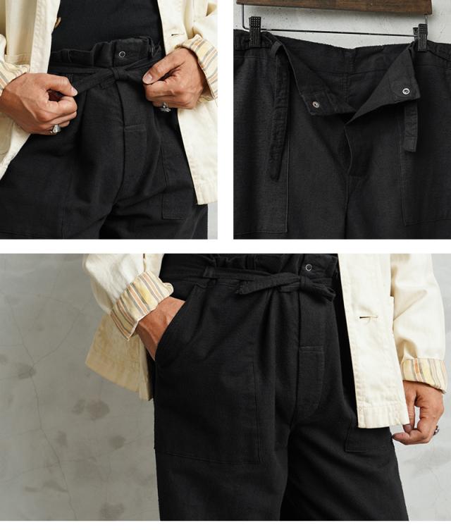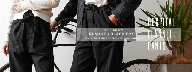 WAIPER.inc 実物 新品 デッドストック 米軍 ヴィンテージ HOSPITAL フランネル リメイクパンツ ポケット付き BLACK染め【I】【Cx】|メンズ ロング 長ズボン ミリタリー 大きいサイズ イージー 黒 ゆったり ブランド おしゃれ