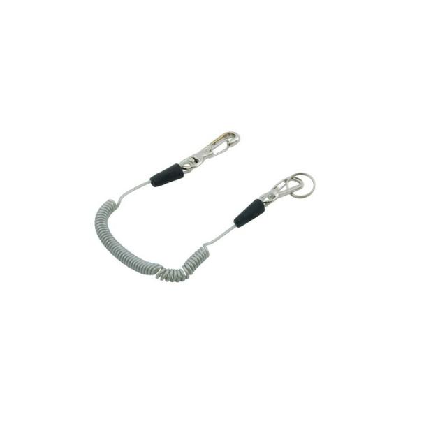 | 機能 | ウレタンコードが衝撃を吸収、伸縮がスムーズで作業性も抜群です。ナスカンが小さいのでかがんだ作業でもじゃまになりません。接続金具の大きいほうを安全ベルト等の金具に取付け、小さいほうを工具に取り付けます。工具の取付穴にリングを通し、コード本体をリングに通して引っ張り、取り付けます。U字カラビナで自由に動きます。 |