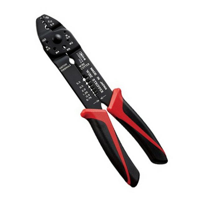 | 機能 | 裸圧着端子(P・B)スリーブの圧着、ボルト・電線の切断、電線の被覆剥きが、これ1丁でできます。環境に配慮した優しい素材でグリップ部分にエラストマーを使用しています。 |