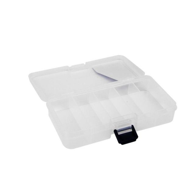 | 仕様 | ●外寸:161×91×31mm。●色:クリア。●内寸:153×76×深さ26mm。●仕切板固定5コマ。 |