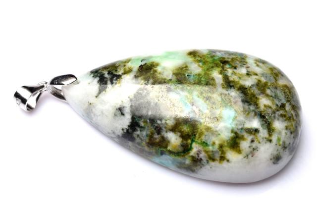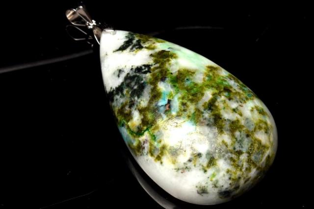 【1点物】シルバー925 エピドートインクォーツ 44x26mm ドロップ ペンダントトップ _PB6648