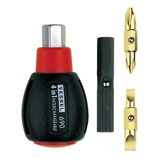 | 機能 | 4種類のビットが1本のハンドルに収納できます。柄はソフトなクッショングリップを採用しています。 |