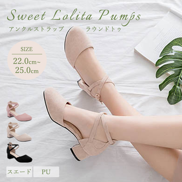 【ポイント5倍】パンプス ヒール4cm 太いヒール ローヒール 小さいサイズ ストラップ アンクルストラップ レディース 女の子 ガーリー 甘ロリ セパレート ブラック ピンク ベージュ 結婚式 ピアノ 発表会 可愛い ラウンドトゥ クロス 演奏会 演出 大きいサイズ 20.0〜25.0