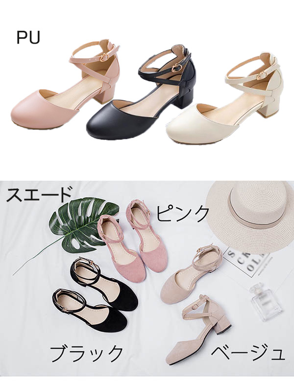 【ポイント5倍】パンプス ヒール4cm 太いヒール ローヒール 小さいサイズ ストラップ アンクルストラップ レディース 女の子 ガーリー 甘ロリ セパレート ブラック ピンク ベージュ 結婚式 ピアノ 発表会 可愛い ラウンドトゥ クロス パーティー シューズ 靴 イベント デート 演奏会 演出 大きいサイズ 20.0〜25.0 di147g5g5m5
