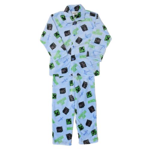 「マインクラフト キッズファッション 総柄長袖ニットシャツ サックス Minecraft ゲームキャラクター グッズ」