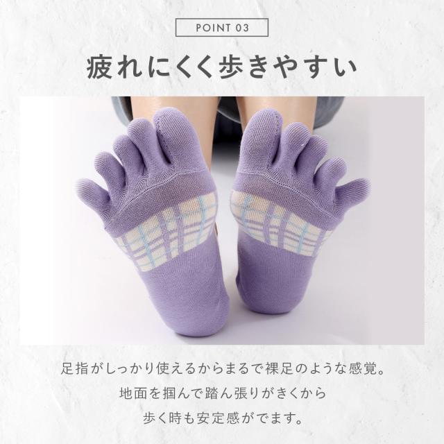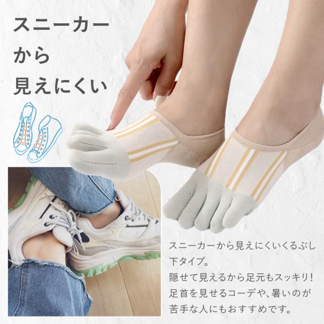 - 歩き方を改善したくて5本指の靴下をいくつか買っていたところでした。 これは柔らかくて、履きやすく、丈が短いタイプをなのを見つけて即買いました。夏も履きやすそうでよかったです。