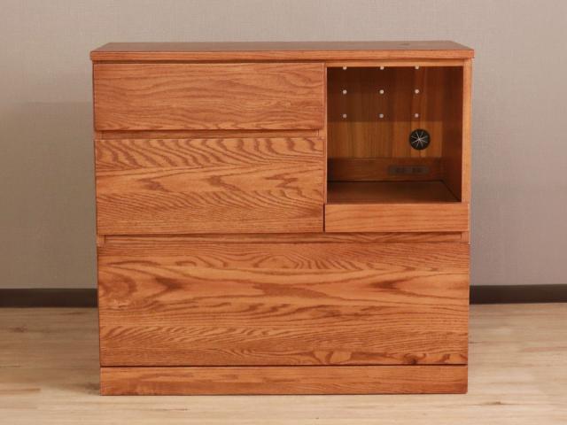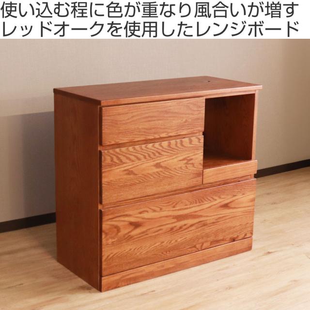 レンジボード 幅90.5cm スライド棚 完成品 天然木 ハイム ( HEIM キャビネット 棚 ラック キッチン チェスト 木製 レンジ台 キッチン収納 引き出し レッドオーク 無垢材 コンセント付 )