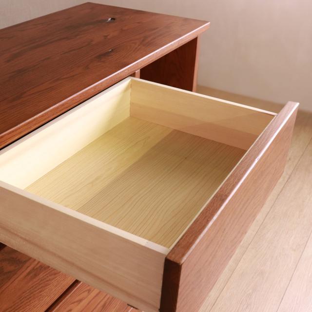 引出しは閉まる音を軽減するソフトクローズ仕様です。レールは横から見えないように引出しの下部に配置されているのでスッキリとした見た目です。