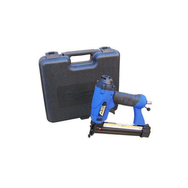 | 機能 | 釘の残量が少なくなると赤く表示される釘残量表示窓付きです。アジャスターにより釘の打ち込み深さを調節することができます。誤った射出を防ぐ安全装置付きです。排気口は360度方向が切り替えられます。 |