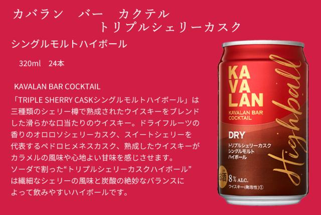 【送料無料】KAVALAN カバランバー カクテル トリプルシェリーカスク シングル モルト ハイボール缶 ウイスキーソーダ 320ml×24本 8%