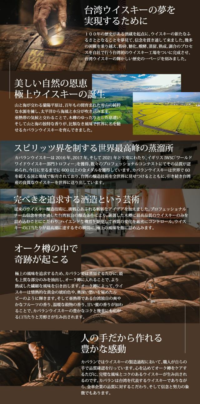 ■内容量:320ml×24本■度数:8% 台湾初の本格製法ウイスキー!!世界的に非常に注目されている台湾産ウイスキー!!カバラン!! ハイボール缶カバランバーカクテル トリプルシェリーカスク シングルモルトハイボール(KAVALAN BAR COCKTAIL TRIPLE SHERRY CASK SINGLEMALT HIGH BALL)!!三種類のシェリー樽で熟成されたウイスキーをブレンドしたトリプルシェリーカスクは、ブレンダーの技術により調和し滑らかな口当たりのウイスキー!!完熟したドライフルーツの香りのオロロソシェリーカスク、スイートシェリーを代表するペドロヒメネスカスク、そしてモスカテルカスクで熟成したウイスキーがカラメルの風味や心地よい甘味を感じさせます!!ソーダで割った”トリプルシェリーカスクハイボール”は繊細なシェリーの風味と炭酸の絶妙なバランスによって飲みやすいハイボールです!! アルコール度数は8%、缶のデザインは「夕方から夜への変化」を表現しており、カバランバーカクテルを楽しむ時間帯を表現されています!! |