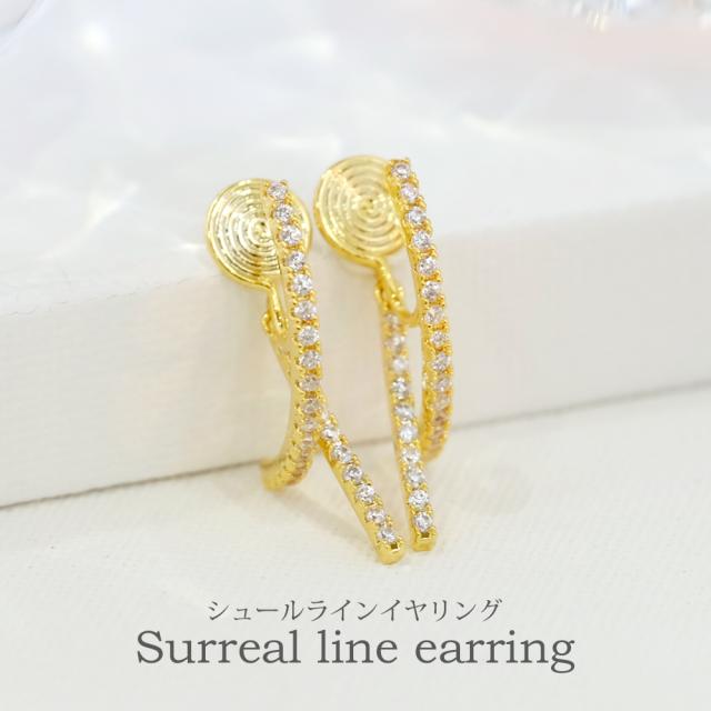 イヤリング 金属アレルギー 対応 K18 18金 プラチナ 仕上 レディース シュール ライン イヤリング 誕生日 プレゼント 彼女 女性 男性 妻 結婚記念日