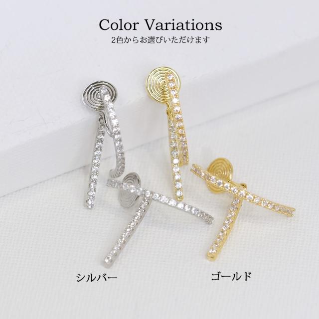 一見シンプルだけど、見る角度によってデザインが変わって見える、個性的なイヤリングです。きっとあなたのお気に入りになること間違いなしです。