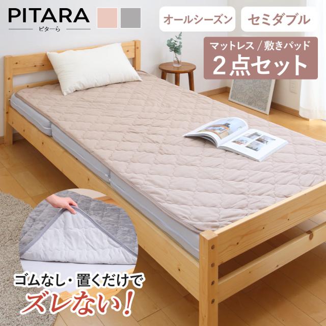 ズレない敷きパッド マットレスセット セミダブル コットンパイル ピターら ( PITARA マットレス 敷きパッド 三つ折り ズレない 密着 通年用 オールシーズン 綿100% 厚さ10cm 折りたたみ コンパクト ベージュ グレー 洗濯OK )