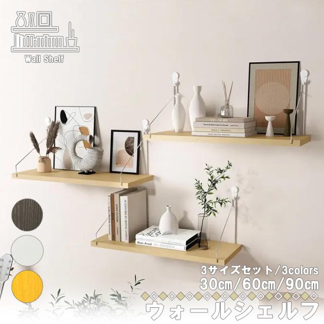 ウォールシェルフ 30cm 60cm 90cm セット 飾り台 飾り棚 賃貸 取付け 壁 吊り具 北欧 壁掛け 壁付け かざり棚 壁面収納 ラック キッチン 居間 リビング 洗面所 子供部屋 トイレ 玄関 タオル バスタオル インテリア おしゃれ フィギュア ディスプレイラック 区分60S NP-040