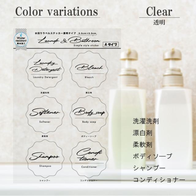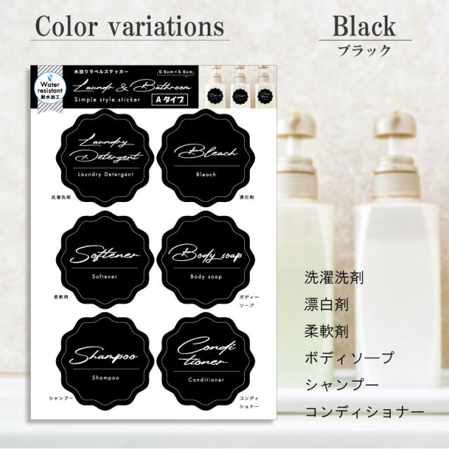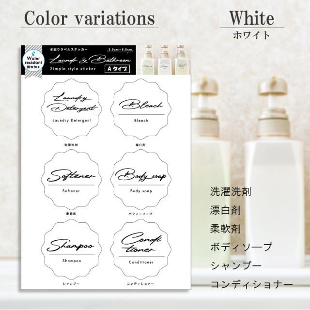 Laundry&Bathroomラベル Aタイプ 耐水 防水 シール おしゃれな詰替えボトル用ラベルシール ステッカー 生活雑貨 ランドリー シャンプー コンディショナー ハンドソープ 洗剤 ボディソープ 柔軟剤 洗濯洗剤 かわいい おしゃれ おしゃれ モノトーン