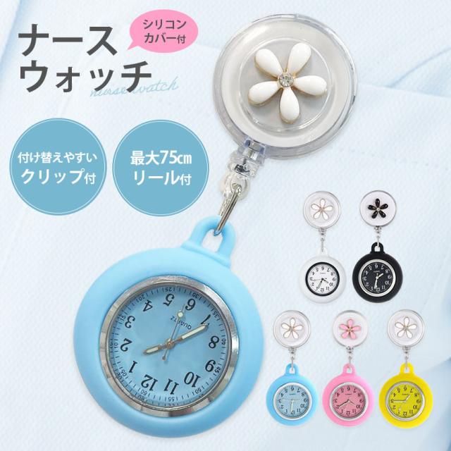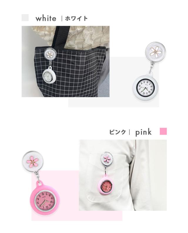 懐中時計 看護師 ナース 時計 ウォッチ 逆さ 反転 文字盤 アナログ リール 伸縮 伸びる のびる 胸 ポケット 夜行 蓄光 花 かわいい おしゃれ 子供 キッズ ポケットウォッチ ナースウォッチ 逆さ時計