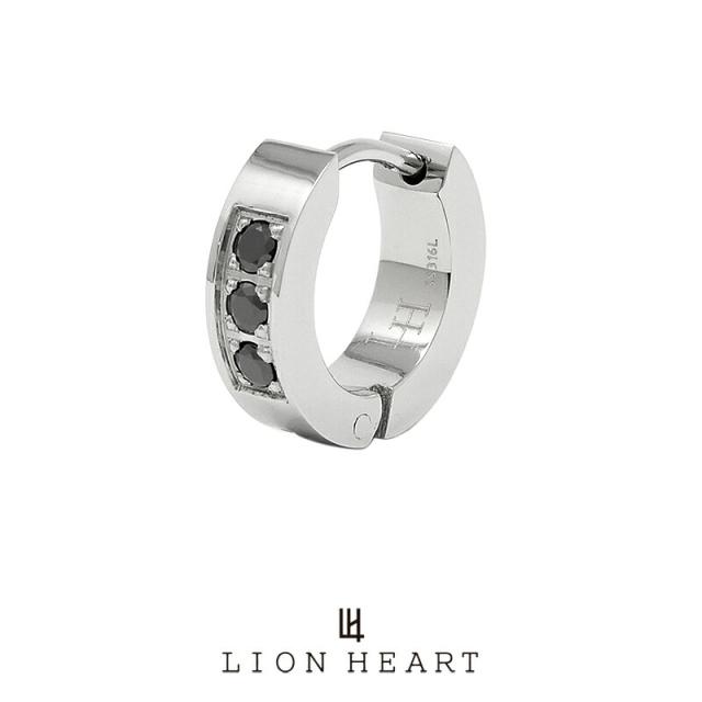 ライオンハート LH-1 フープピアス 3ストーン サージカルステンレス シルバー LHMP004NS LION HEART 石 1点売り 片耳用 リング シンプル メンズ ピアス ブランド プレゼント 誕生日 メール便対応 ステンレス
