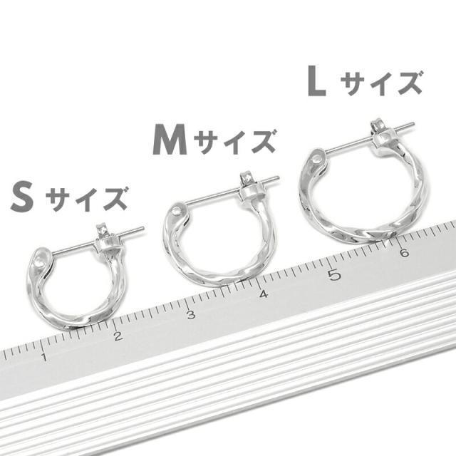 S/M/Lの3サイズ展開となりますが、全体のシルエットとピアスのツイスト(ひねり)の回数がサイズにより異なります。