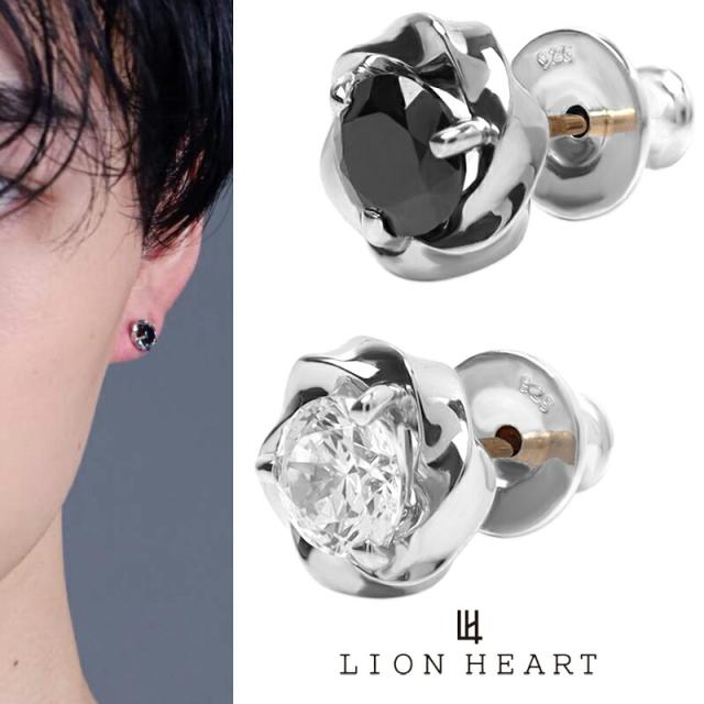 ライオンハート for Gift スタッズピアス ツイストフレーム クリア / ブラック シルバー925 1EA195 LION HEART K18ポスト 1点売り 片耳用 メンズ ピアス ブランド 誕生日 プレゼント シルバー