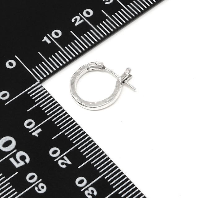 ハンマーで叩いた槌目(ツチメ)の無骨な風合いがプラスされた、シルバーの素材感が楽しめるフープピアス。
