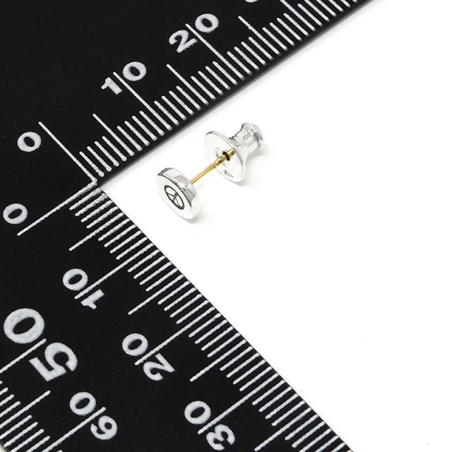 プレーンなサークルピアスにピースマークのロゴを手打ち刻印した小ぶりなピアス。