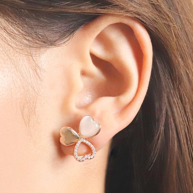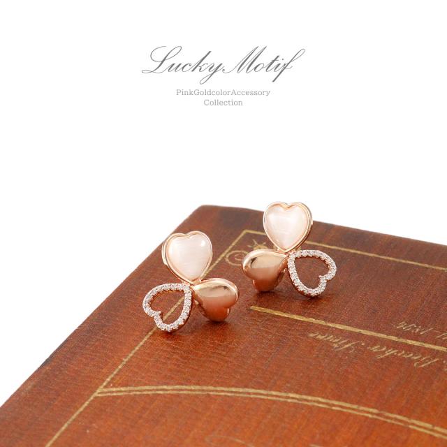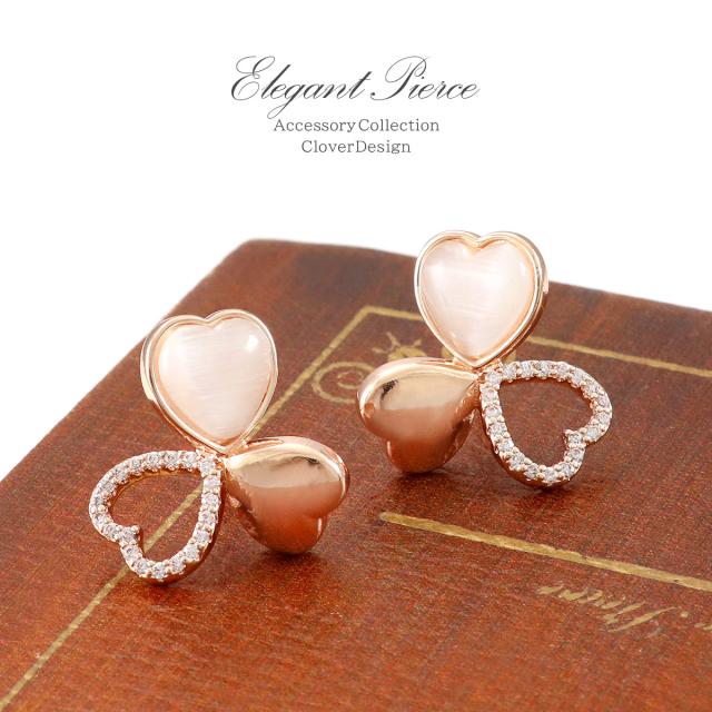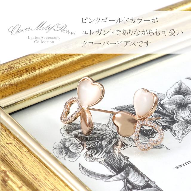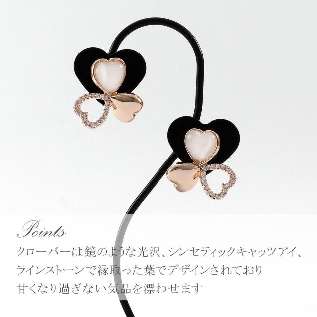 クローバー ピアス レディース 可愛い アクセサリー スタッドピアス 三つ葉のクローバー モチーフ おしゃれ ピンクゴールド 色 キラキラ 大き目 大きめ 揺れない かわいい みつ葉のクローバー 女性 キャッツアイ 可愛いピアス 自分用 プチプラ 高見え ホワイトデー お返し