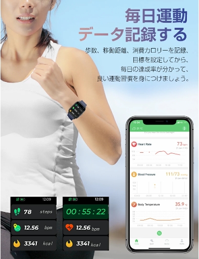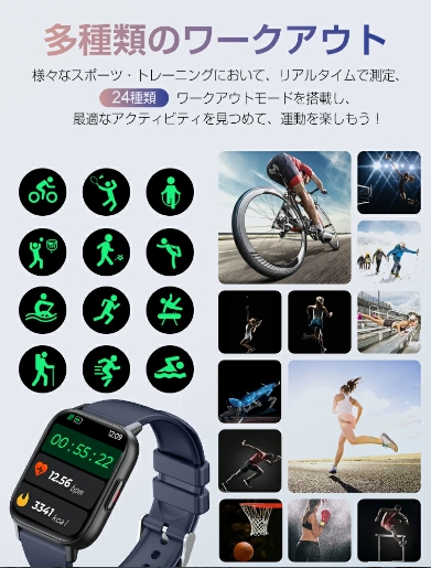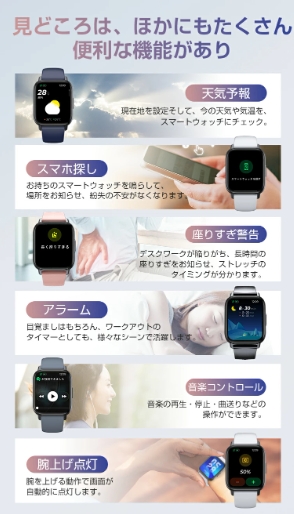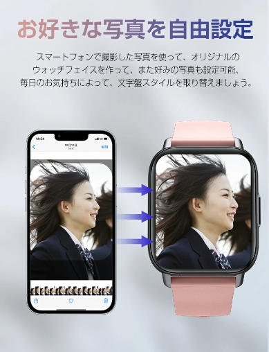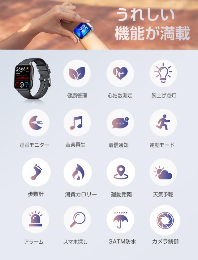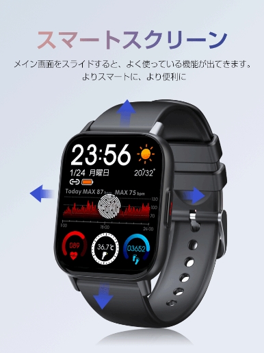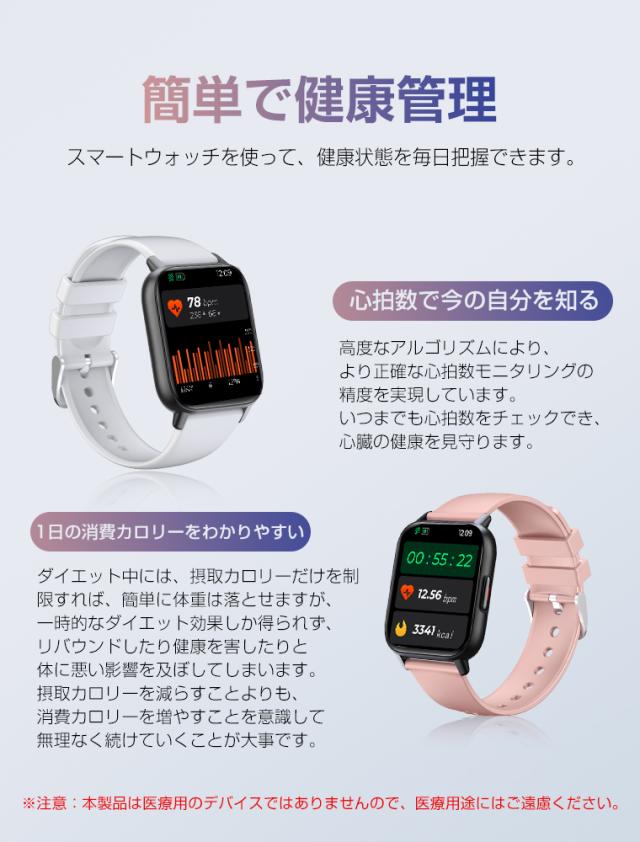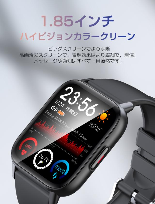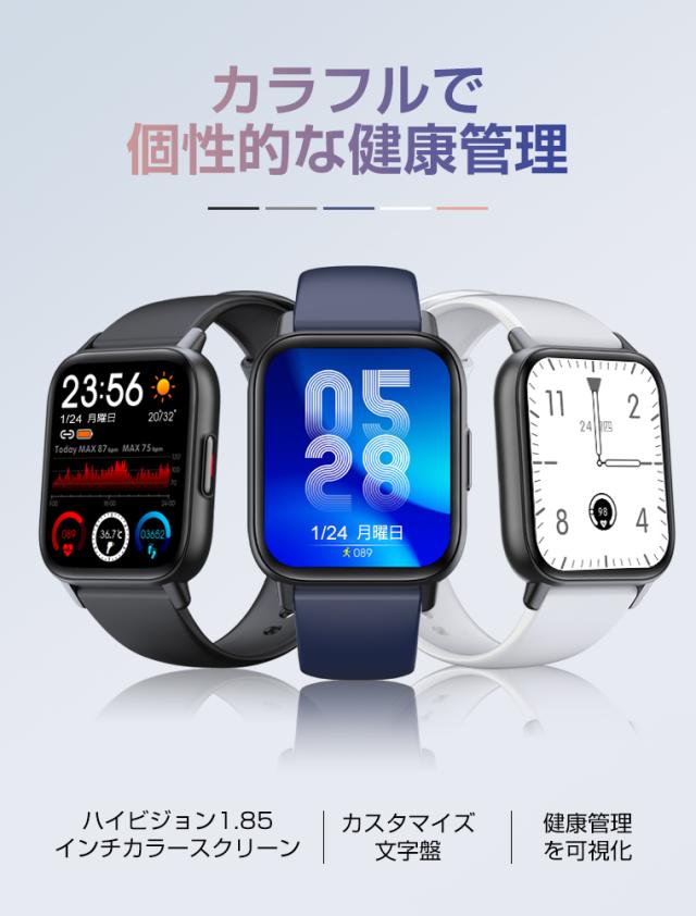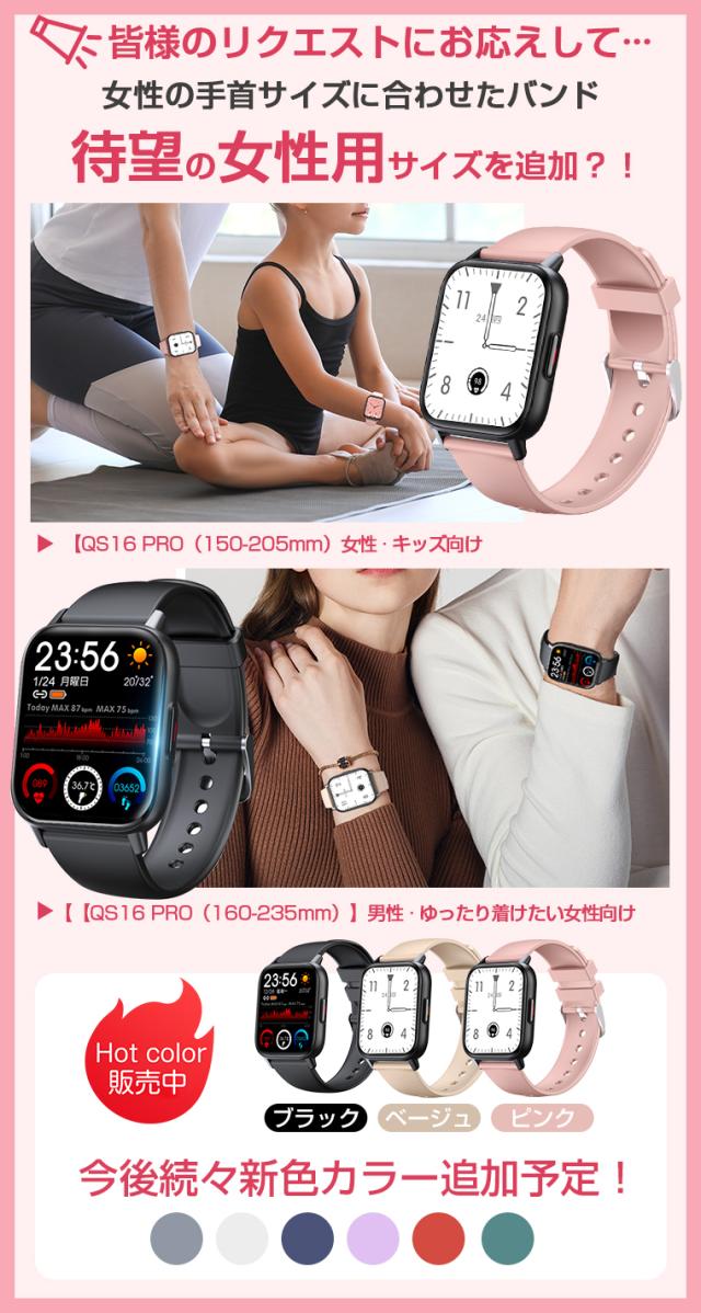 レディーススマートウォッチ QS16 PRO 小さめ腕時計 メンズ 24時間健康管理 1.85インチ大画面 3ATM防水 運動モード歩数計 消費カロリー心拍数 着信通知 睡眠モード 天気予報音楽製御 腕上げ点灯 iPhoneAndroid対応