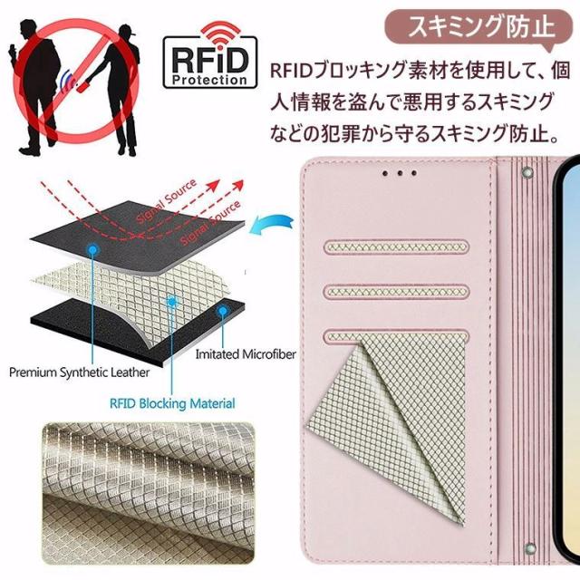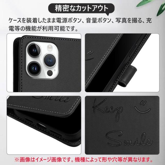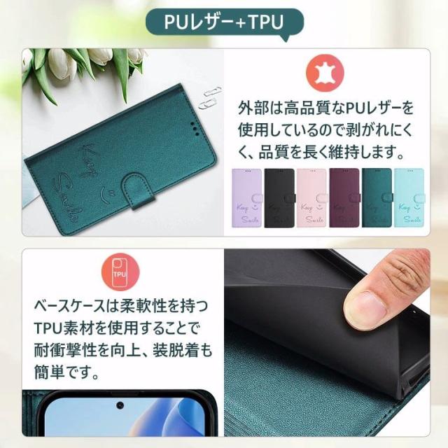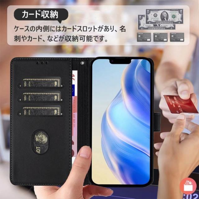 ■オシャレな手帳型ケース 手帳型のフタが目隠しになるので、電話・メールの着信など周りの視線を遮ります。スピーカーホール付きなので閉じたまま通話も可能です。 ■カード収納 ケースの内側にはカードスロットがあり、名刺やカード、紙幣などが収納可能です。 ■スタンド機能あり スタンド機能付きなので、横向きに立てかけて、動画視聴、ゲームなどに便利です。 ■耐衝撃 スマホをしっかり覆っている手帳型ケースなので、本体の落下時に伝わる衝撃を吸収して、スマホをしかっり守ります。 ■素材:PUレザー+TPU 外部は高品質なPUレザーを使用しているので剥がれにくく、品質を長く維持します。 ベースケースは柔軟性を持つTPU素材を使用することで耐衝撃性を向上、装脱着も簡単です。 ■精密なカットアウト ケースを装着したまま電源ボタン、音量ボタン、写真を撮る、充電等の機能が利用可能です。 ※画像は一例となります。購入前に必ずお手持ちの機種をご確認ください。