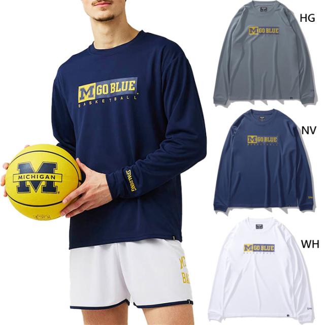 スポルディング メンズ レディース ロングスリーブTシャツ ミシガン Mゴーブルー バスケットボールウェア トップス 長袖Tシャツ ロンT ホワイト 白 グレー ネイビー 灰色 送料無料 SPALDING SMT24128M