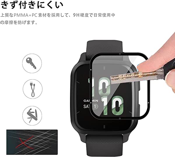 GARMIN Venu Sq 2 フィルム 液晶保護フィルム PMMA+PC製素材 3D 高透過率 耐衝撃 防塵 飛散防止 指紋防止 画面鮮やか 高精細 貼り付け 簡単 Venu Sq 2 / Venu Sq 2 Music 送料無料