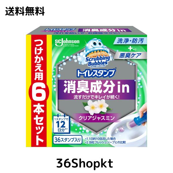 【Amazon.co.jp 限定】 スクラビングバブル トイレ掃除 トイレスタンプ 消臭 クリアジャスミンの香り 詰め替え用 6本(36スタンプ分) トイ