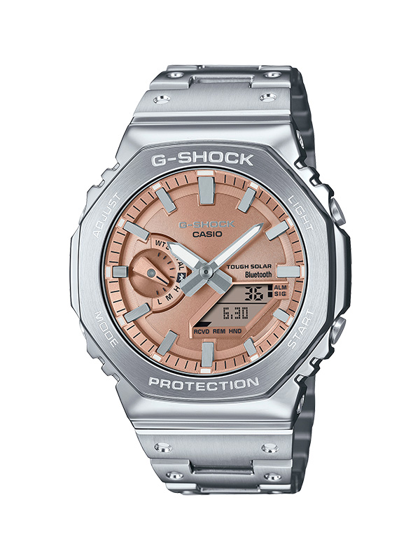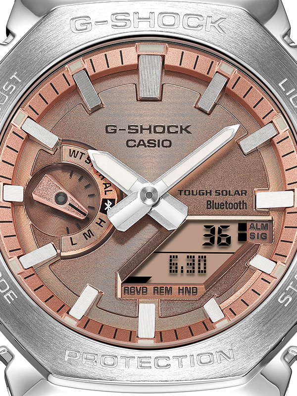 G-SHOCK初代モデルDW-5000Cのコンセプトを受け継いで開発されたアナログ「2100」シリーズのフルメタルモデルです。