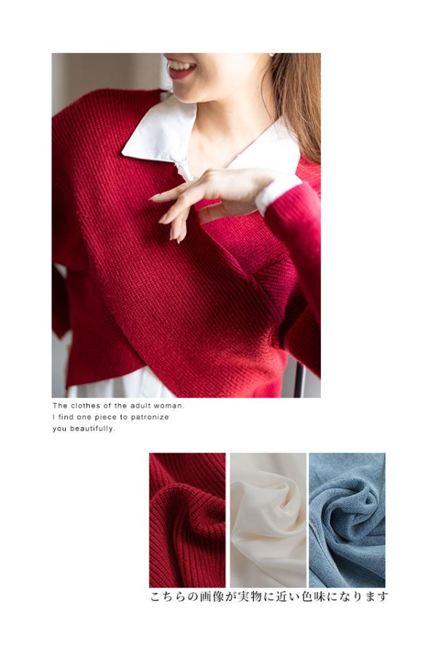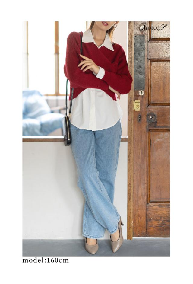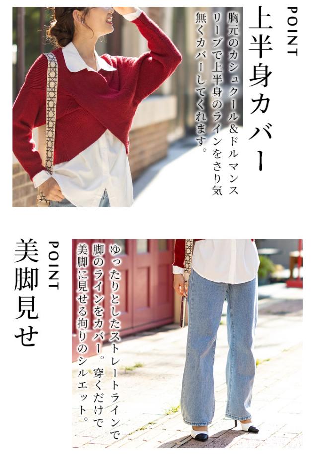 特徴: ニット デニム ドルマンスリーブ カシュクール ストレート 綿 コットン