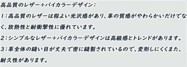 ?【高品質のレザー+バイカラーデザイン】高品質のレザーは程よい光沢感があリ、革の質感がやわらかいだけでなく、放熱性と耐衝撃性に優れています。ンプルなレザー+バイカラーデザインは高級感とトレンドがあります。