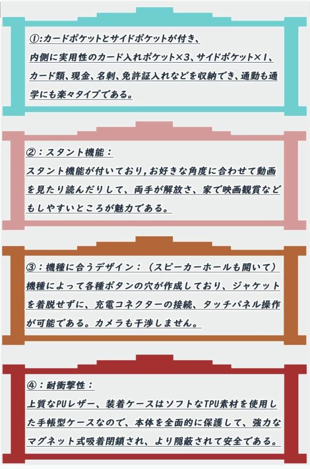 ・【耐衝撃性&強力なマグネット】質なPUレザー、装着ケースはソフトなTPU素材を使用した手帳型ケースなので、本体を全面的に保護して、強力なマグネット式吸着閉鎖され、より隠蔽されて安全である。