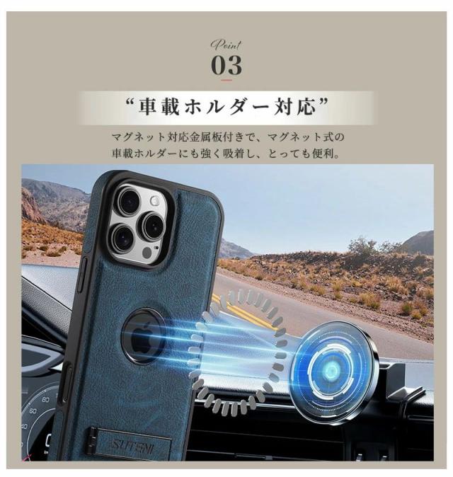 マグネット対応金属板付きで、マグネット式の車載ホルダーにも強く吸着し、とっても便利。