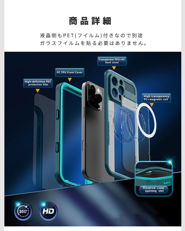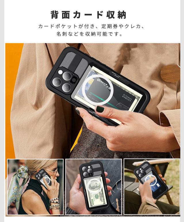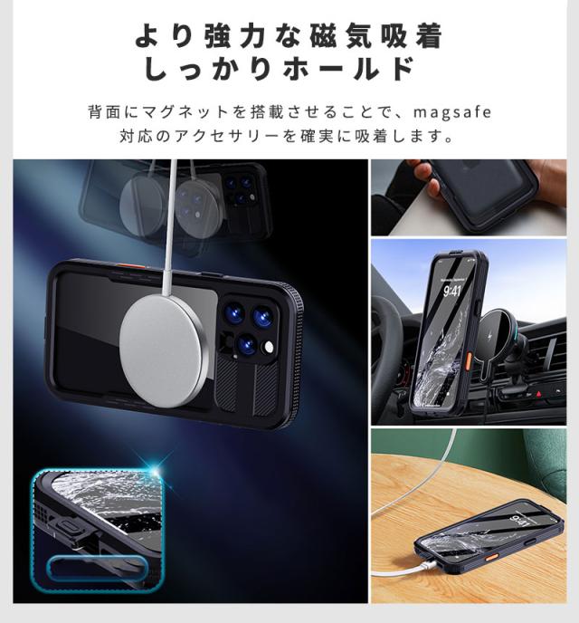iPhoneケース 防水ケース iPhone16Pro iPhone16Plus 全面保護 iPhone16ProMax ケース カバ レジャー 水中撮影 IP68防水 iPhone16 保護フィルム付 クリア 透明 完全防水 耐衝撃 防塵防雪 Magsafe対応 お風呂 磁石 マグセーフ iPhone16ProMax スマホケース 防水カバー