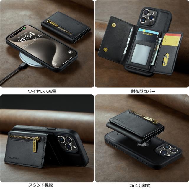 iPhone 16 ケース iPhone 16 Pro iPhone 16ProMax ケース アイフォン16 ケース 2in1 分離式 マグネット内蔵 取り外し可能 2way カード収納 スタンド機能 iPhone 16ProMax 財布型 iPhone 16 Plus アイフォン 16 プロ マクスiPhone 15Pro iPhone 15ProMax 革 スマホケース
