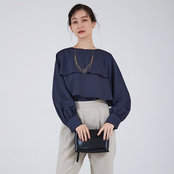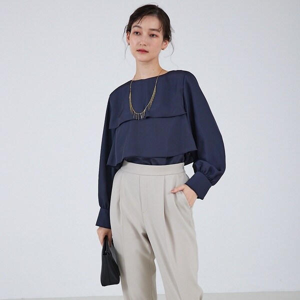 控えめなフリルが上品で、大人な女性らしいエレガントな印象に仕上げます。